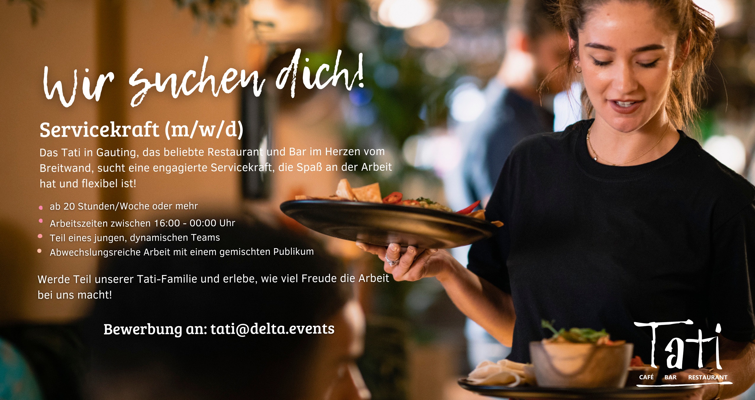 Reservierungen gerne telefonisch unter 089-89501002, Privatfeiern und weitere Fragen an tati@delta.events.